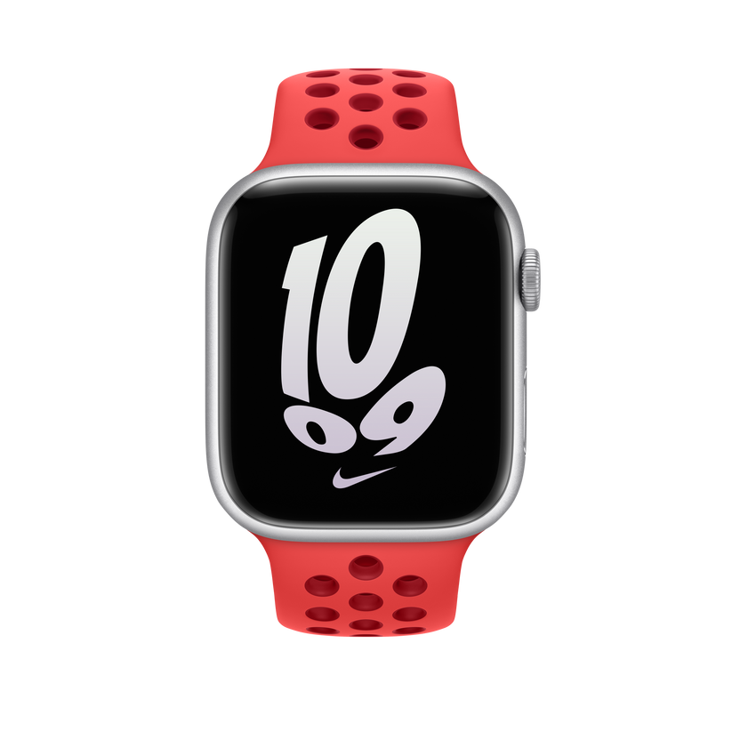 Made from a custom high-performance fluoroelastomer with compression-moulded perforations for breathability, the Nike Sport Band is durable and strong, yet surprisingly soft. The smooth, dense material drapes elegantly across your wrist and feels comfortable next to your skin. An innovative pin-and-tuck closure ensures a clean fit.