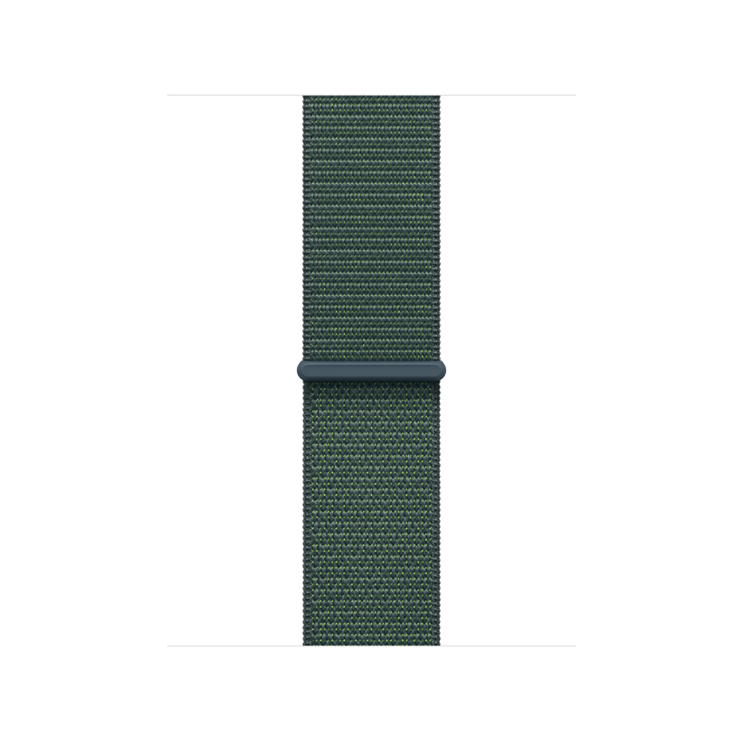 Soft, breathable and lightweight, the Sport Loop features a hook-and-loop fastener for quick and easy adjustment. The double-layer nylon weave has dense loops on the skin side that provide soft cushioning while allowing moisture to escape. This weave is made with 82% recycled yarn, some of which contains material from discarded fishing nets. This strap is carbon neutral. The Sport Loop contains 45% recycled content by weight, 100% of manufacturing electricity is covered by clean energy, and 50% or more of all carbon-neutral Apple Watch products are shipped without aeroplanes.
