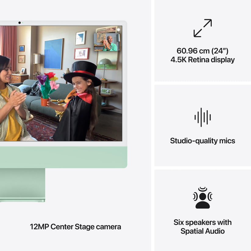 iMac. The ultimate all-in-one desktop. Built for Apple Intelligence. Supercharged by the M4 chip, browsing and multitasking across apps feels snappier. With a stunning 60.96 cm (24?) 4.5K Retina displaying an iconic design, and advanced camera, mics and speakers. iMac is brilliant for work and play.