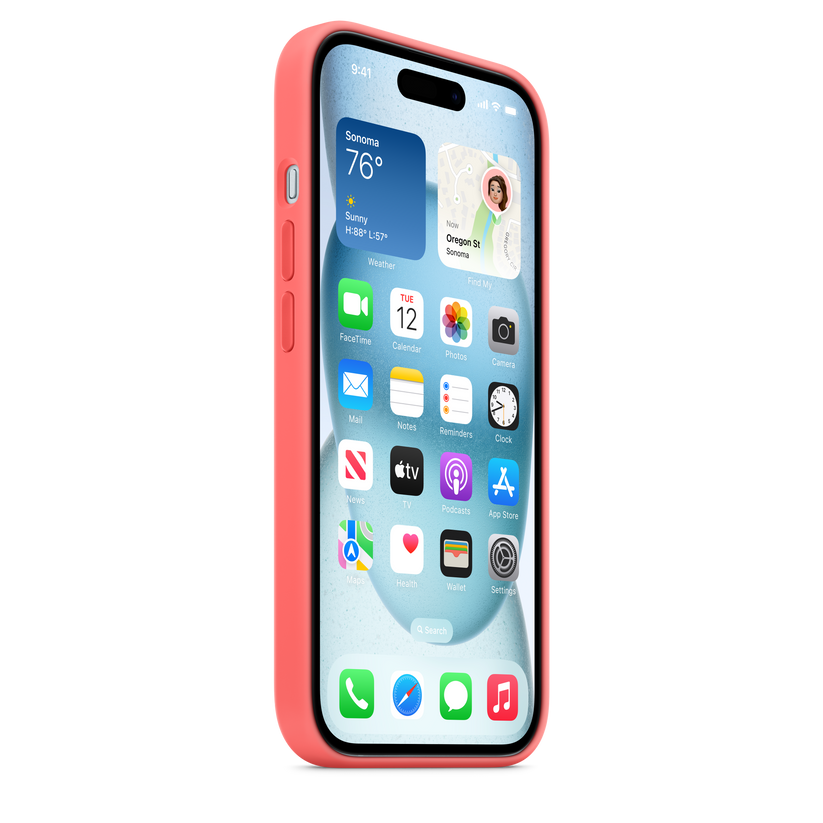 Designed by Apple to complement iPhone 15, the Silicone Case with MagSafe is a delightful way to protect your iPhone.