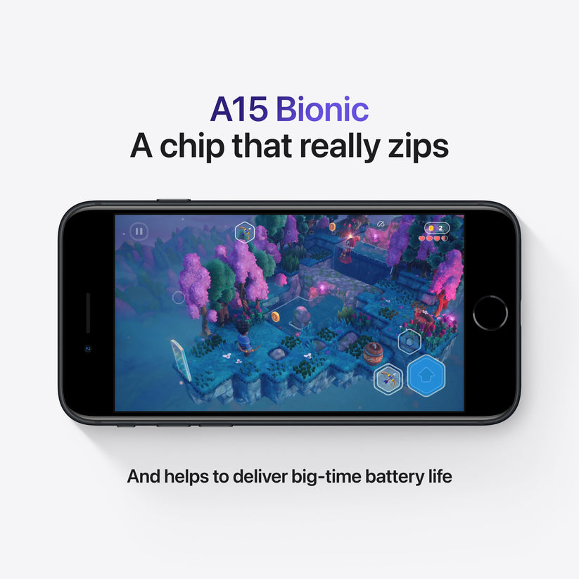 Lightning-fast A15 Bionic chip. Big-time battery life and a superstar camera. Plus, the toughest glass in a smartphone and a Home button with secure Touch ID.