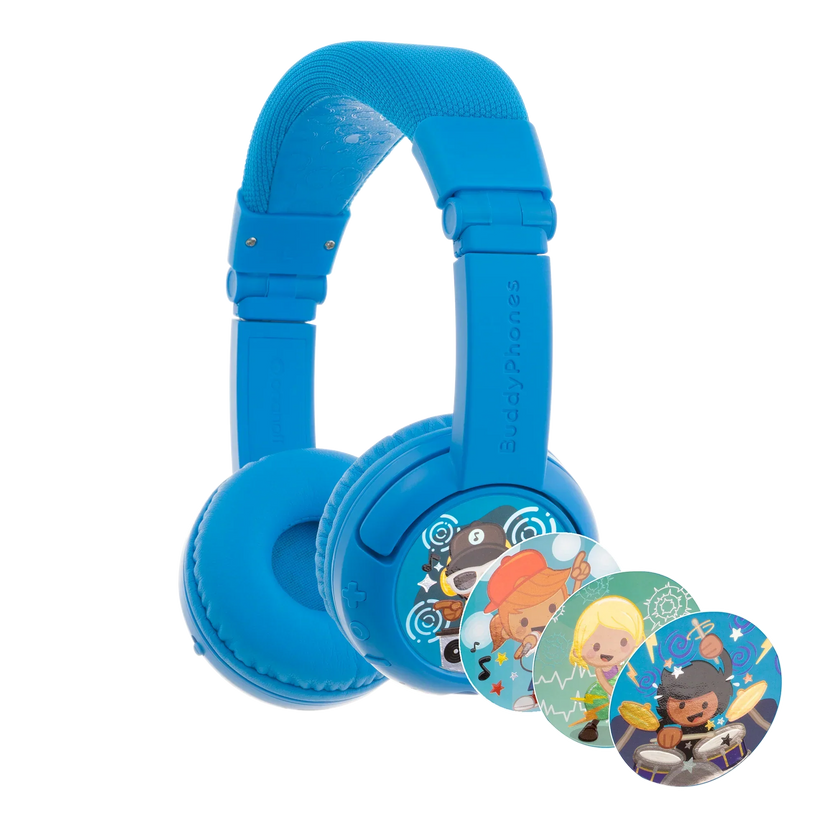 Discover the vibrant world of Play+ Wireless Bluetooth Kid's Headphones, available in six eye-catching colors adorned with delightful stickers featuring fun characters.