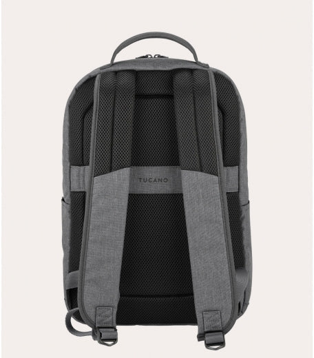 Introducing the eco-friendly Tucano backpack designed for 15.6 and 16 MacBooks and laptops, crafted from recycled plastic with a stylish mélange-look fabric.