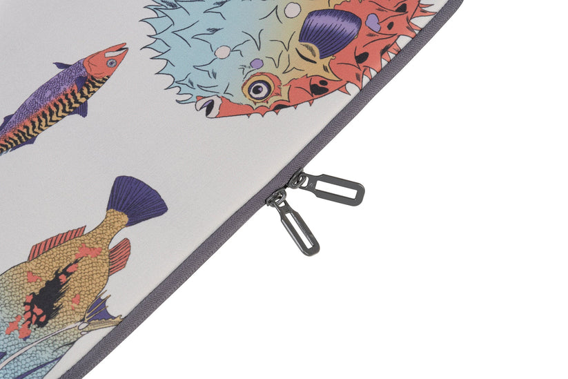 Schizzo is a designer printed neoprene sleeve MacBook Air/Pro 13" ,featuring fish graphics characterized by refined design and colors. Equipped with our Anti-Slip System®,the Schizzo Second Skin® also fits snugly thanks to its flat-lock stitching. This guarantees both a slimmer profile and excellent protection. Lined with soft, scratch-resistant material. |