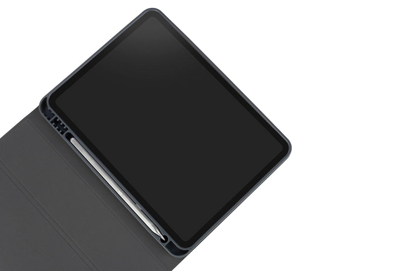 Case for iPad Air 11"(2024) with flexible rear housing and scratch-resistant interior, which can be transformed into a convenient standup for different positions of use. The case comes with an internal compartment for storing the Apple Pencil and an external compartment for charging. Camera opening on the back.